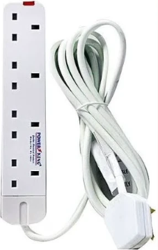 Power King 4-Way Extension Cable with Surge Protection & UK Adapter - 3 Meters White